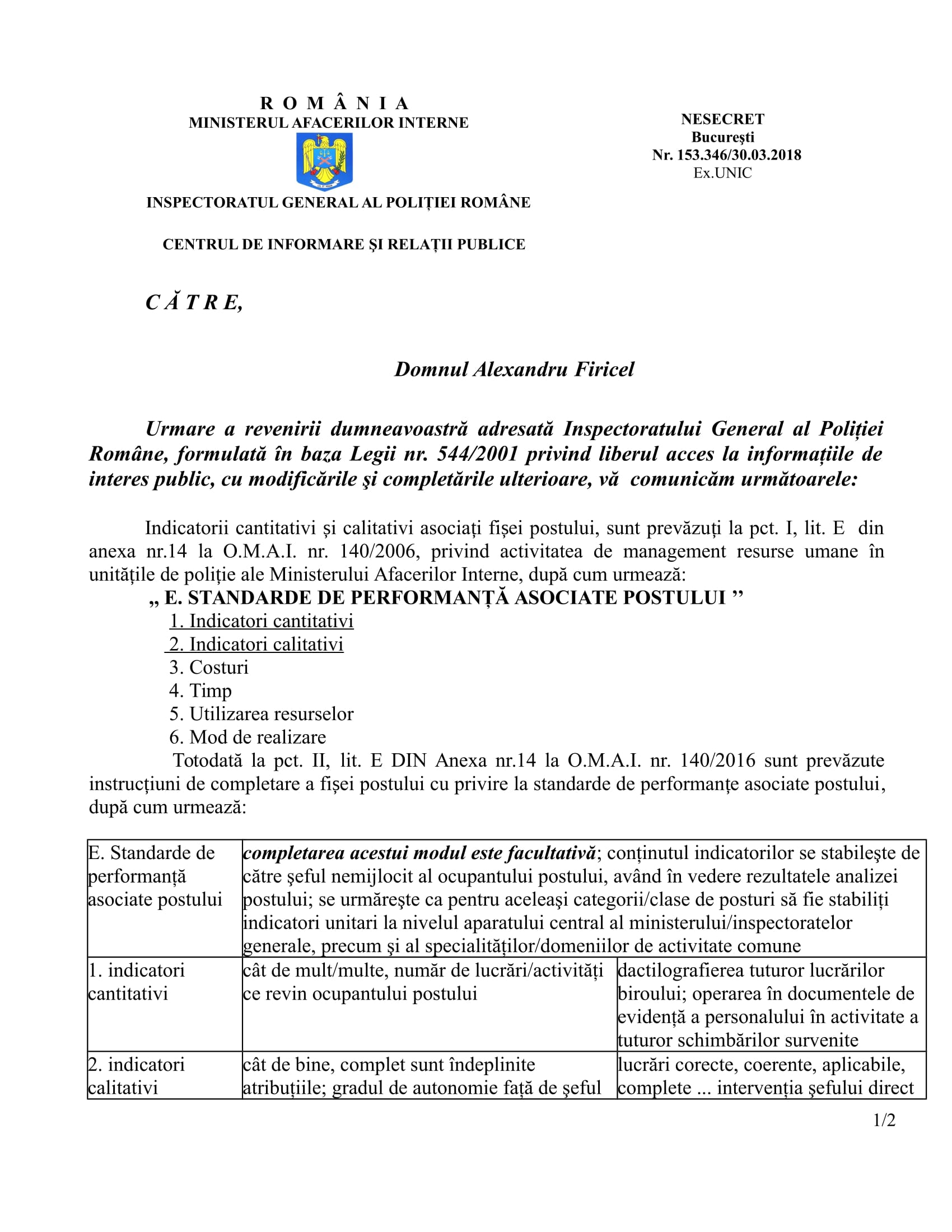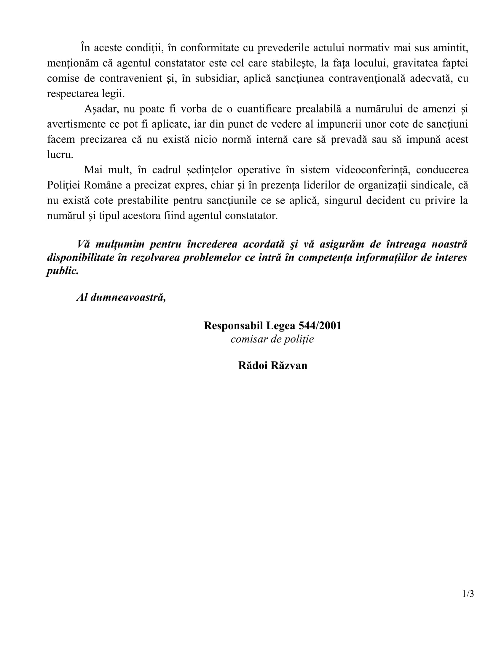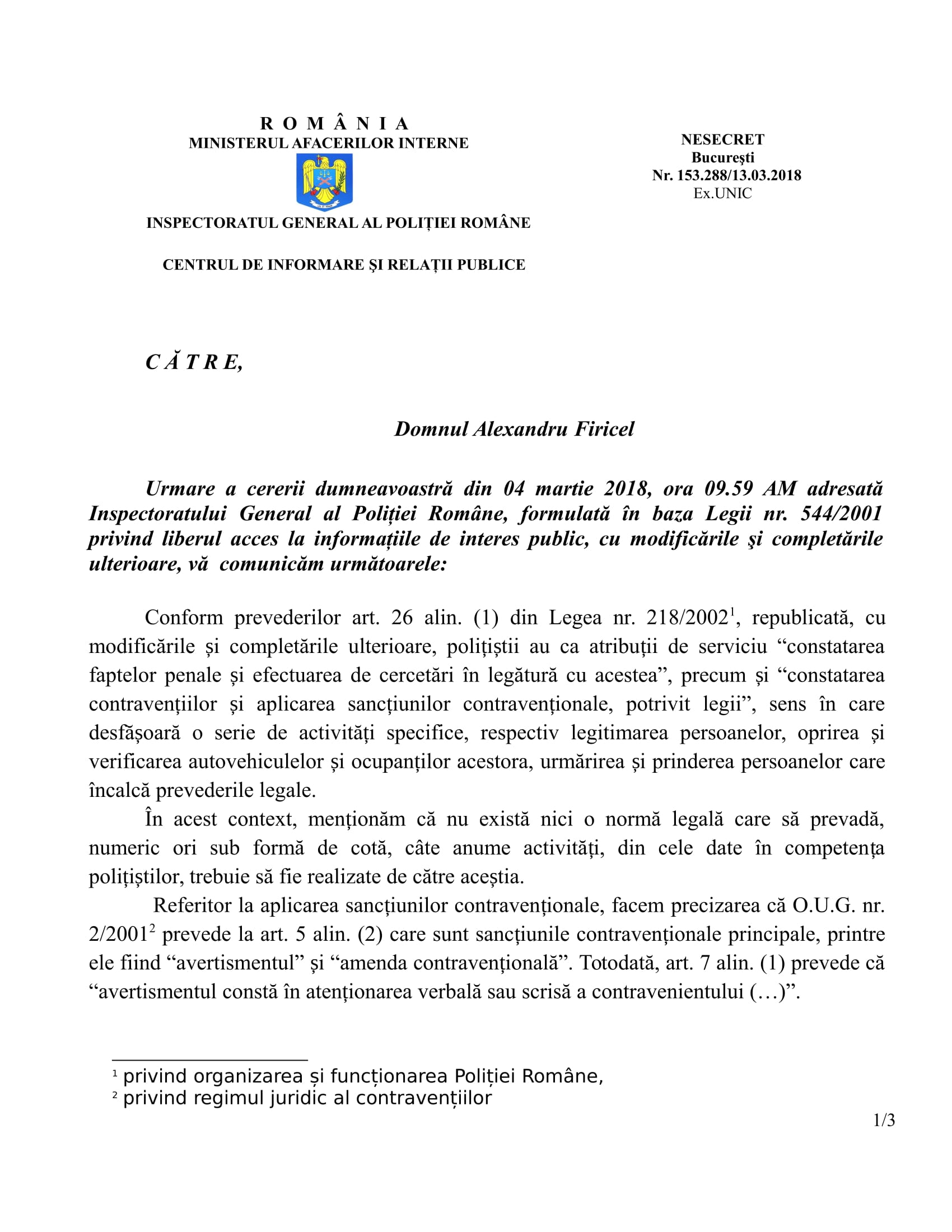 N.R.: Munca de Poliție, munca în folosul cetățeanului și a statului român nu e o muncă de fabrică. Managerii din poliție ar trebui să mai studieze managementul (cărțile de management de pe care stuadiză studenții la ASE sunt ideale pentru acești manageri) și să îl și înțeleagă. Solicităm public Inspectoratului General al Poliției Române și Inspectoratului General al Poliției de Frontieră Române să emită un comunicat prin care „să spulbere” (sau nu) această practică din Poliția Română de aplicare a contravențiilor „pe bandă rulantă”, la normă, ca la fabrică.