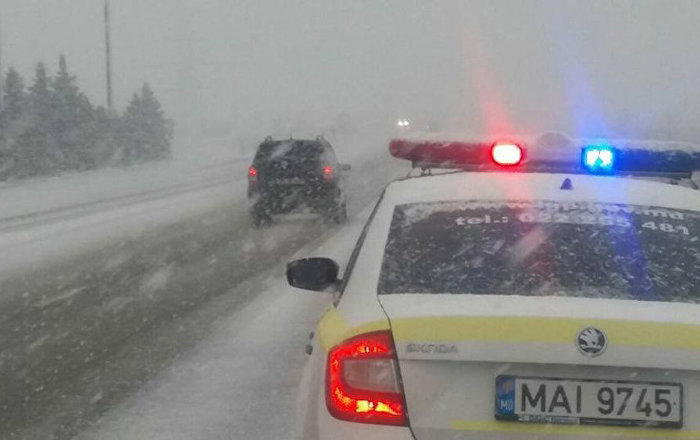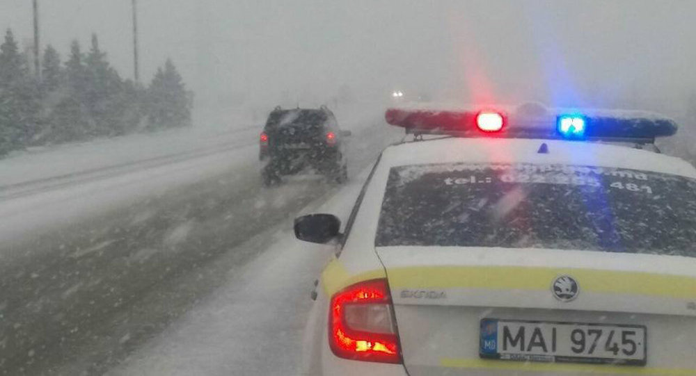 Poliţia anunţă că luni dimineaţa ningea viscolit pe tot cuprinsul ţării, iar în regim sporit activează „întru eficientizarea traficului rutier şi acordarea ajutorului conducătorilor auto, 53 de echipaje mobile și 110 inspectori de patrulare”.