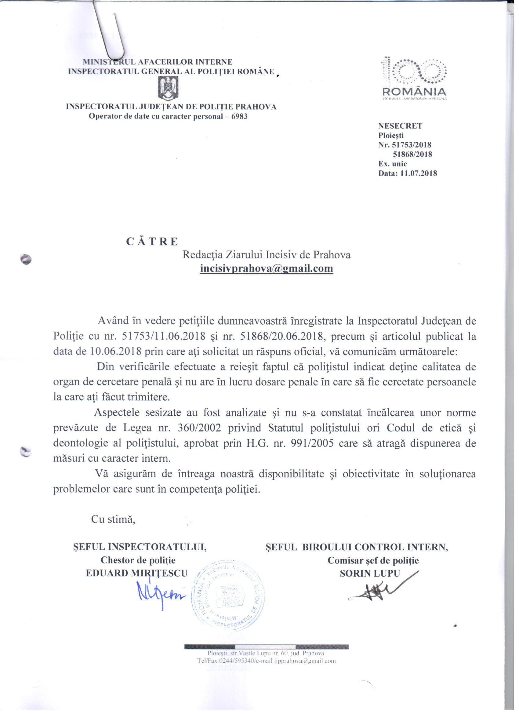 Reamintim ca, pe parcursul anilor 2014, 2015, 2016 şi în intervalul ianuarie – februarie 2017, NEGULESCU MIRCEA (zis „Portocală”, alias „Zdreanţă”), în calitate de procuror al Serviciului Teritorial Ploieşti din cadrul Direcţiei Naţionale Anticorupţie, anterior în aceeaşi funcţie la Parchetul de pe lângă Curtea de Apel Ploieşti a fost un adevarat si brav „Ucigaş de destine”, cu fetisurile sale.