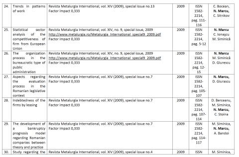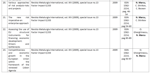 - Cătălina Sitnikov, profesor la Craiova, cu 3 apariții alături de NIcu Marcu în revista panaramă Metalurgia International;