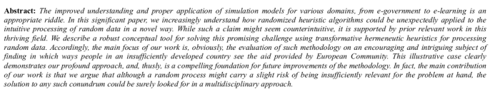 Articolul prezintă indicii stridente încă de la început că reprezintă o farsă, vorbind despre practica larg răspândită în cercuri academice de a produce ,,articole de cercetare fără semnificație dar de mare importanță pentru pseudo-știința”. Exact ce făcea Metalurgia.