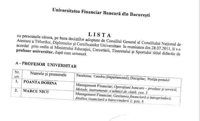 Universitatea Financiar-Bancară unde a fost uns Nicu a murit demult. A funcționat cu acreditare mai puțin de 3 ani și a fost închisă chiar după prima evaluare, imediat după ce Marcu își obținuse titlul.