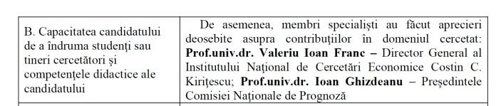 De altfel, potrivit declarațiilor lui Marcu, Valeriu Ioan Franc alături de Ion Ghizdeanu – fostul șef al Comisiei Naționale de prognoză inculpat în prezent pentru fals intelectual, au avut numai cuvinte de laudă pentru ,,capacitatea candidatului” la obținerea de titluri universitare, Nicu Marcu: