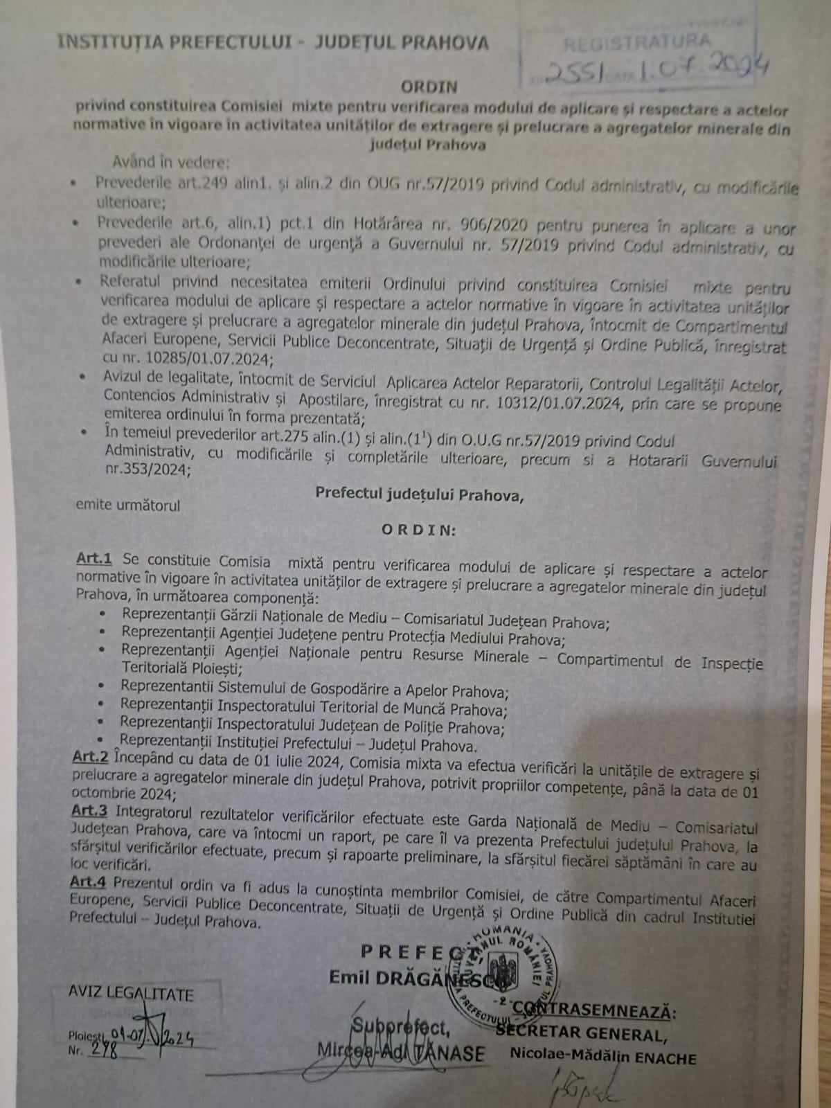 In urma Ordinului Prefectului nr. 2551 din 1 iulie 2024, s-au început represalii și controale abuzive, vizând doar acei agenți economici care concurează cu firmele „agreate”, de „casa”. De asemenea, începând cu 26 august 2024, Garda Națională de Mediu va desfășura controale în județul Prahova, dar doar la anumite companii selectate la cererea Prefectului, conform unor declarații făcute de un reprezentant al Prefecturii, mai degraba s-a laudat ca doar a fost in Grecia si probabil dupa acest control de luni va ajunge si in Dubai.